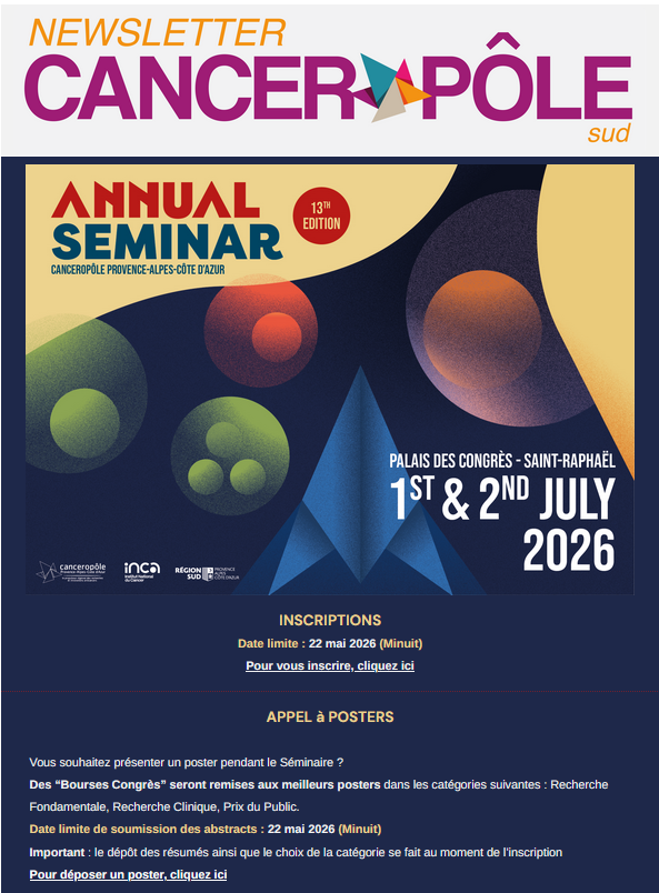 Retrouvez toute l’actualité du Canceropôle Sud dans la newsletter du mois de Mars 2026 !