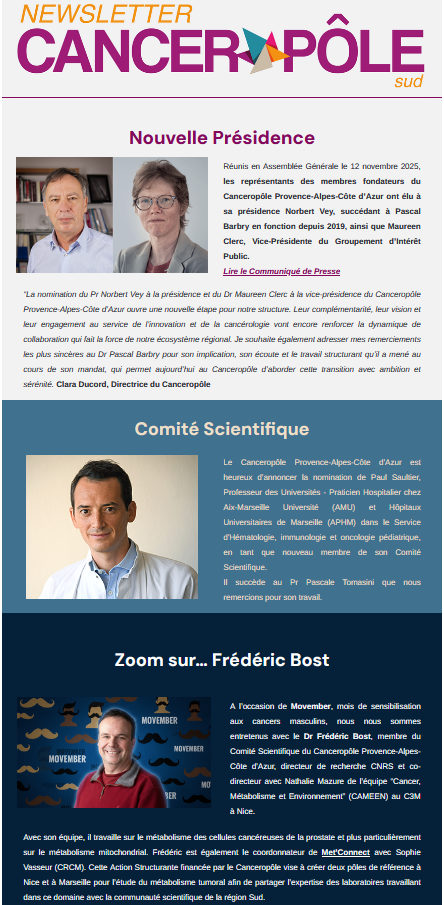 Toute l’actualité du Canceropôle Sud dans la newsletter du mois de novembre 2025.