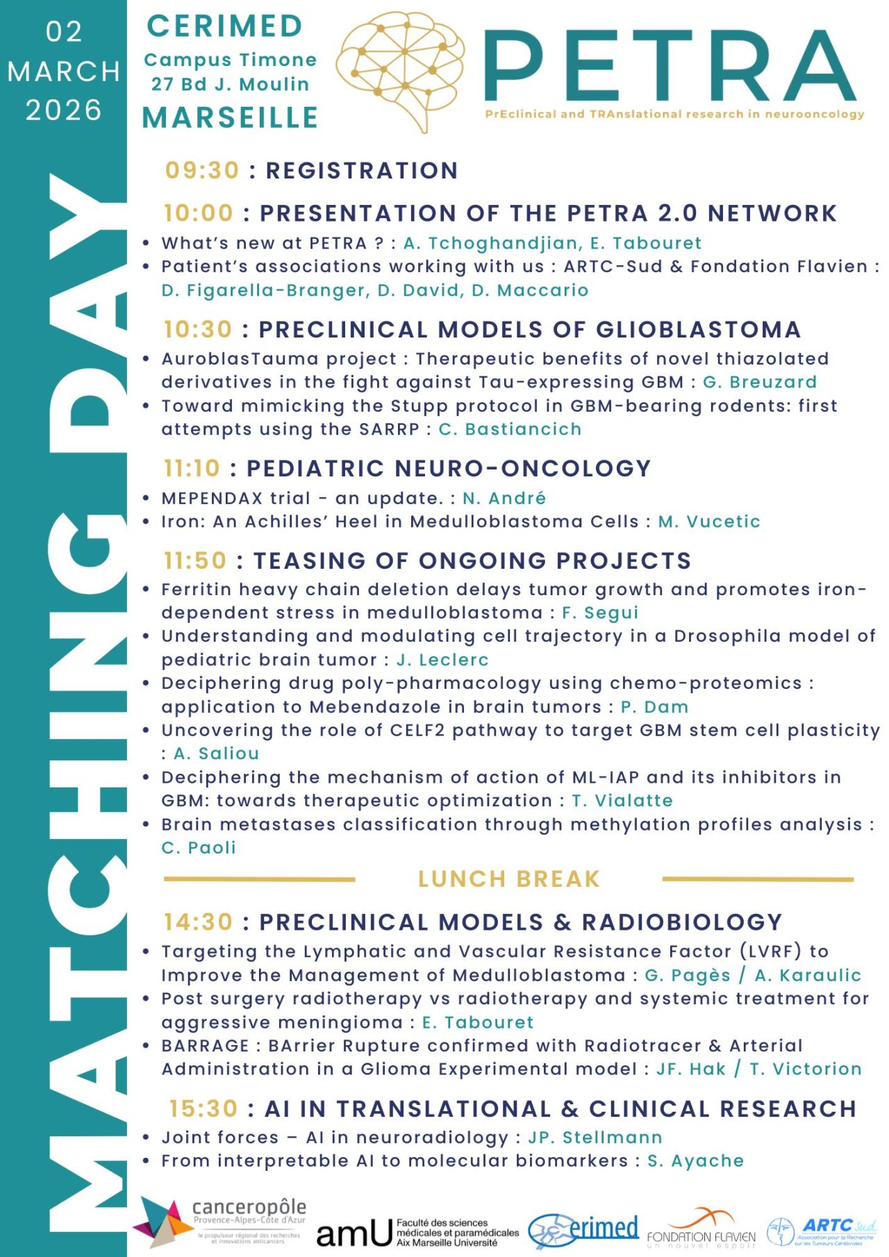 L’Action Structurante PETRA Network organise son 3e Matching Day le lundi 2 mars 2026, de 09h30 à 16h30, au Centre Européen de Recherche en Imagerie Médicale (Campus Timone, Marseille).