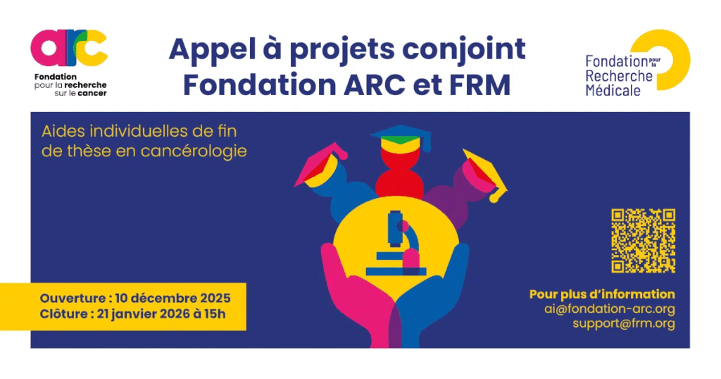 La Fondation ARC et la FRM ont décidé de joindre leurs efforts afin de mutualiser l’expertise des demandes de 4èmes années de thèse en cancérologie en ouvrant un appel à projet (AAP) conjoint.